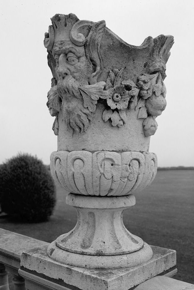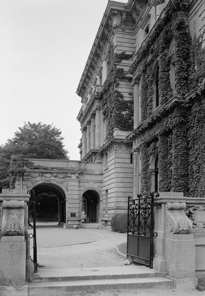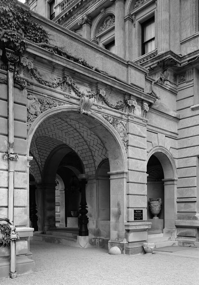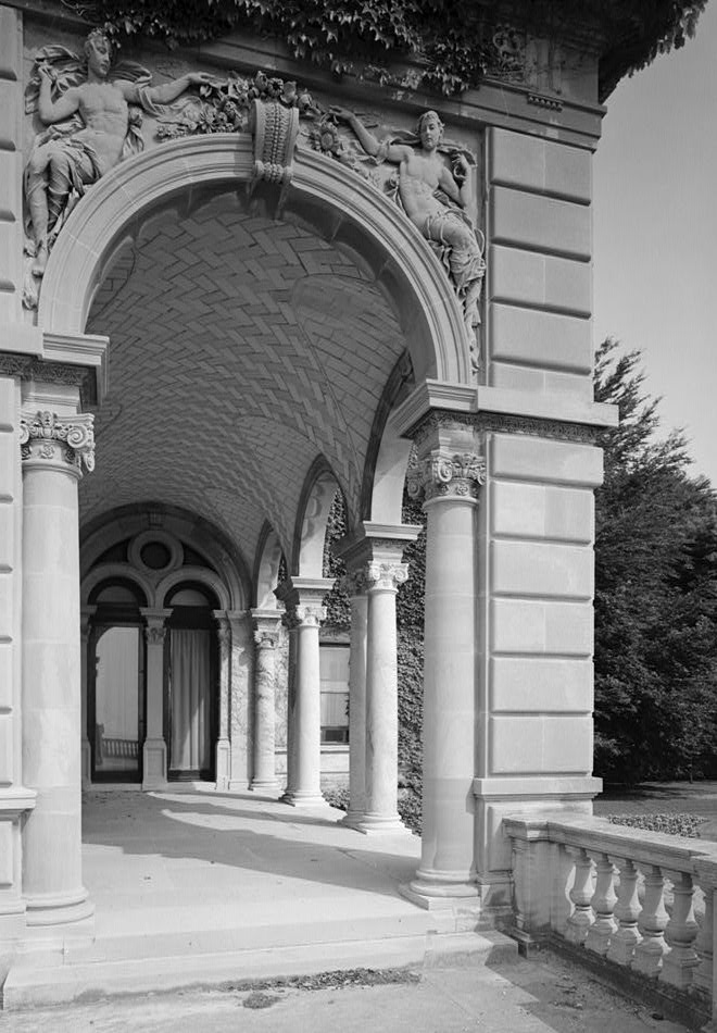 The Loggia was two stories high and faced the Atlantic Ocean. The Spandrels were decorated with the four seasons and the Doric 1st Floor cornice was decorated with the Vanderbilt “V” clustered in oak leaves and images of Apollo and Mercury